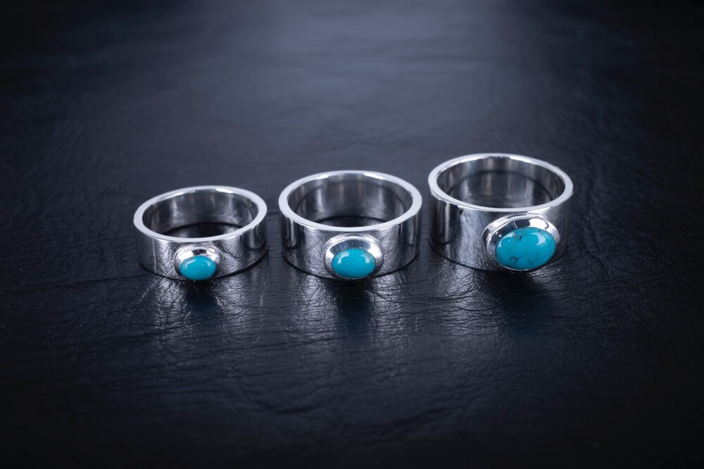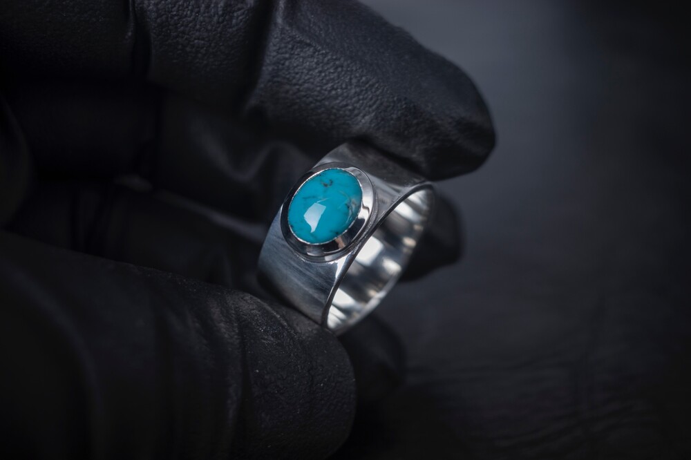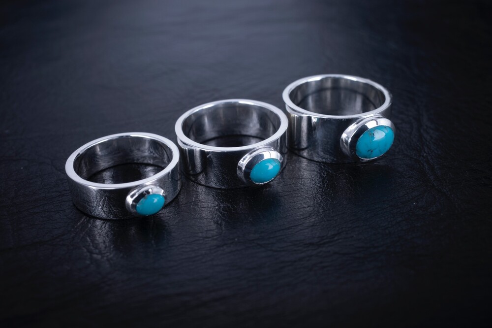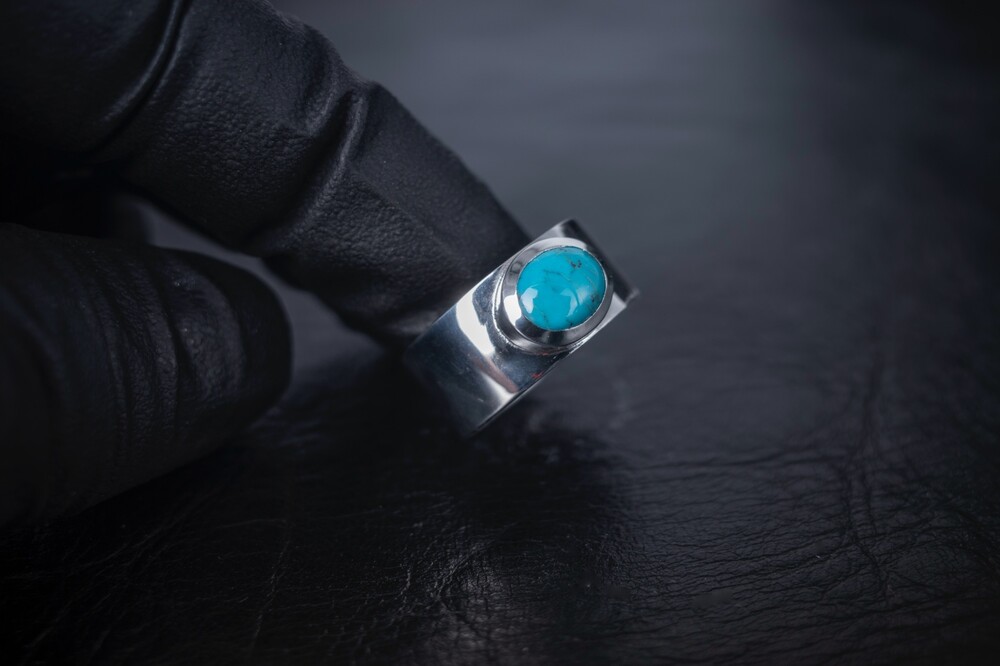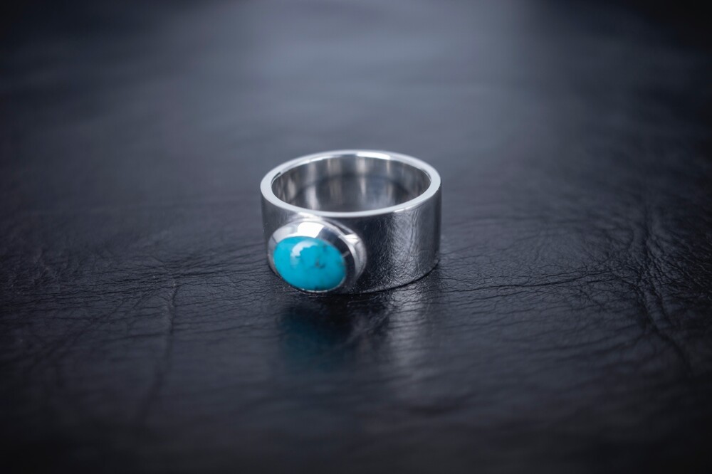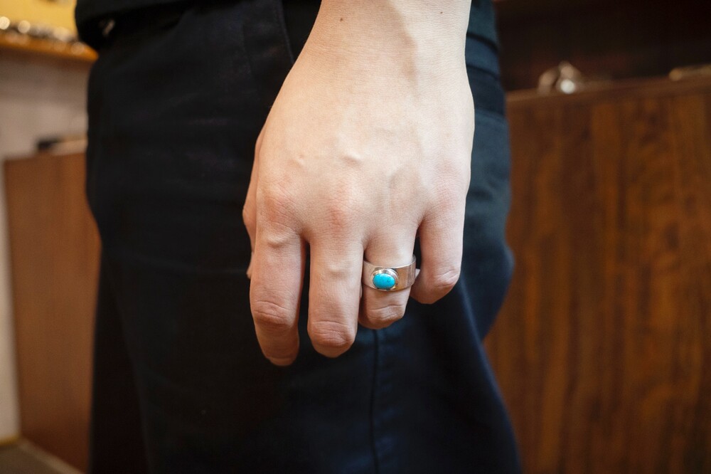 메인에는 터키석이 세팅되어 있으며, 심플한 평반지 형태의 반지에 메인에 터키석이 세팅되는 제품입니다.