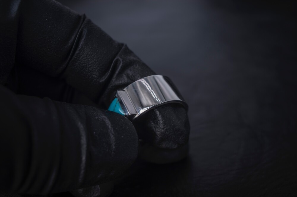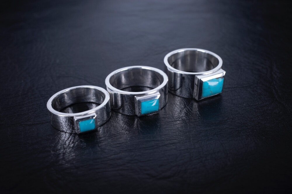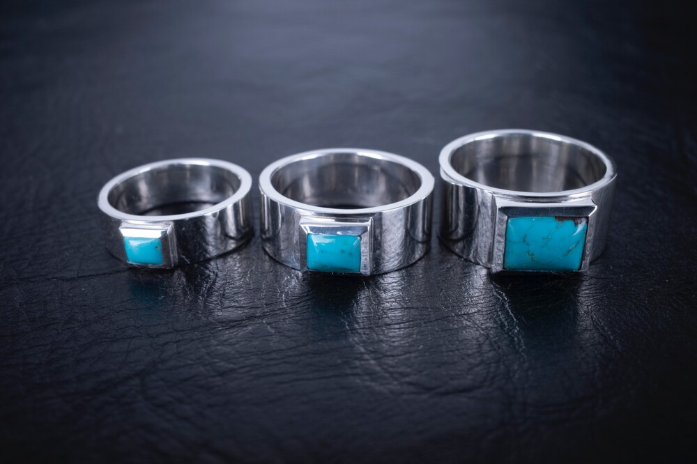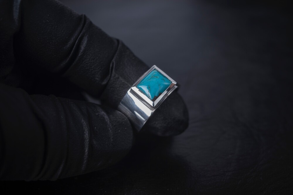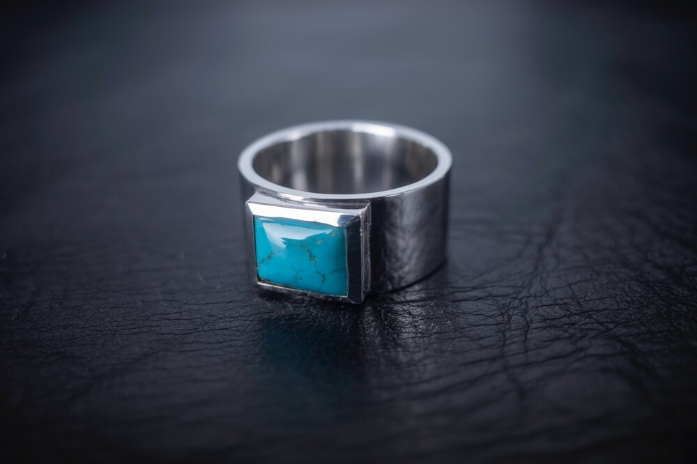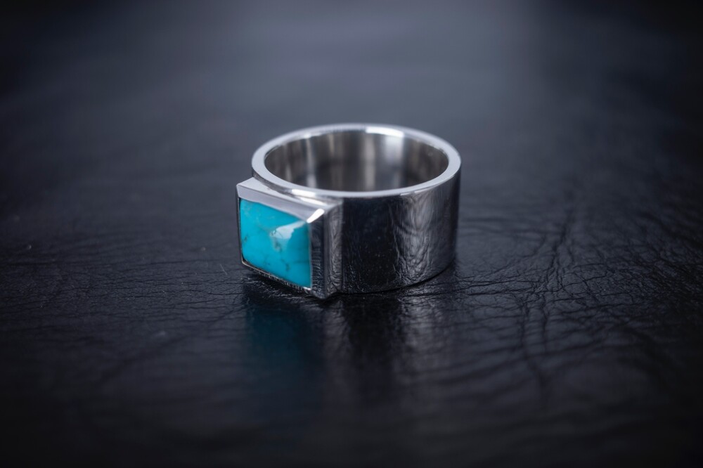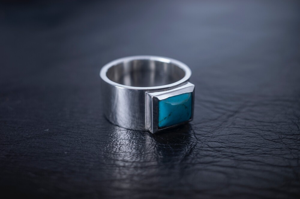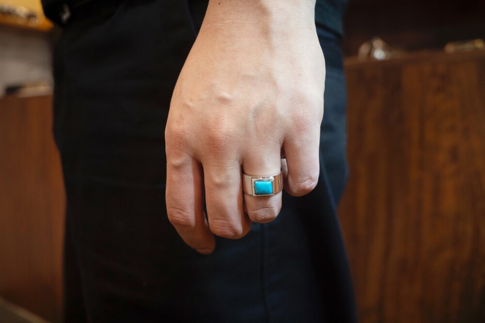 메인에는 터키석이 세팅되어있으며, 심플한 평반지형태의 반지에 메인에 터키석이 세팅되는 제품입니다.