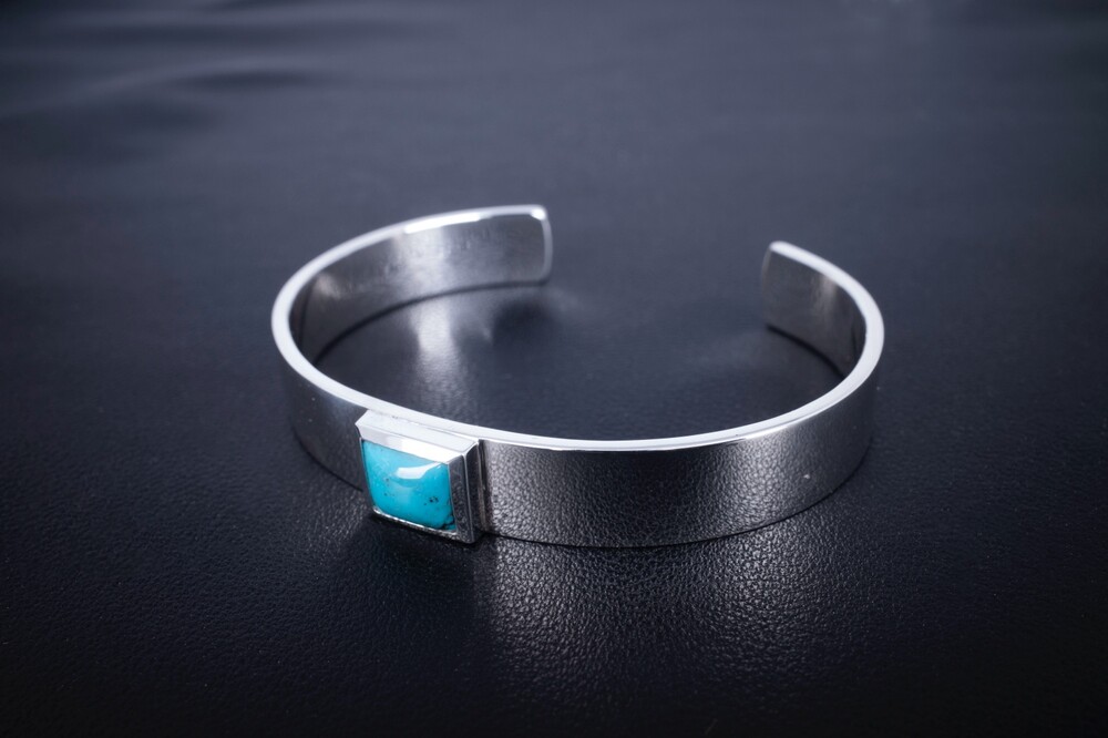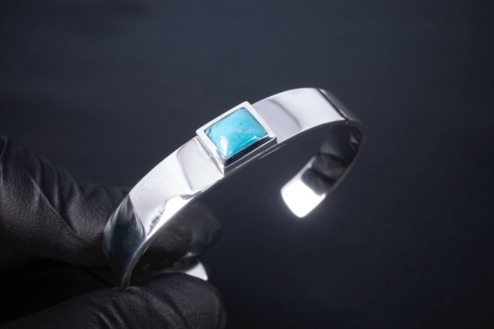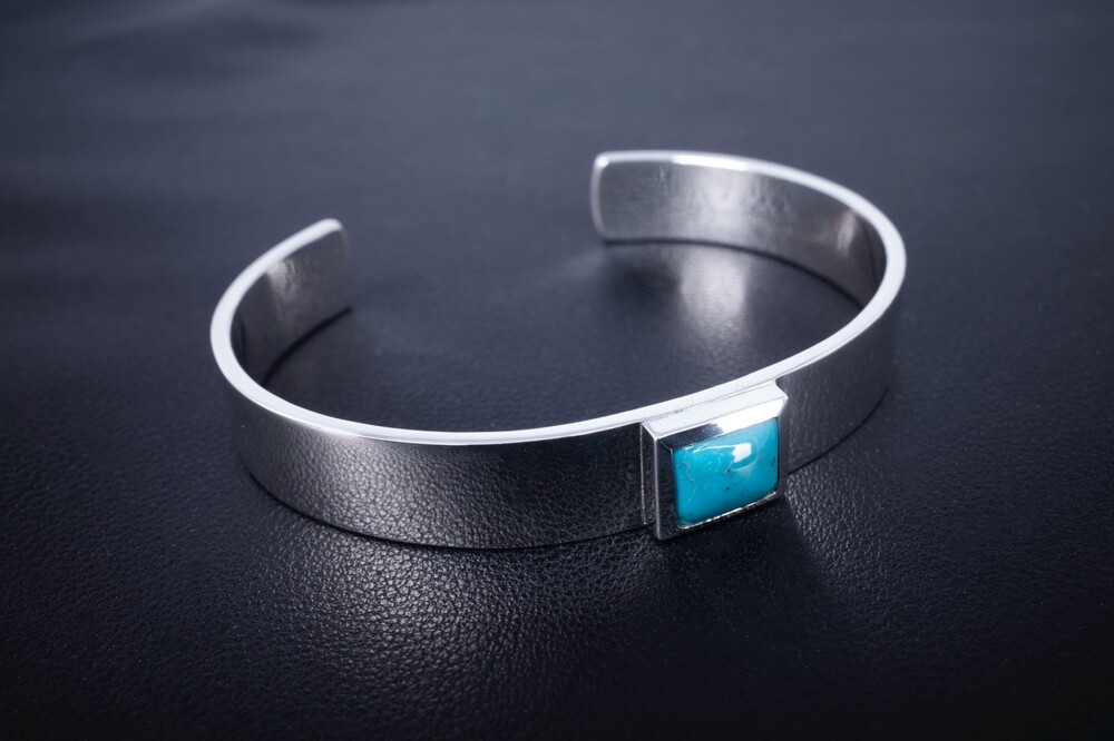 메인에는 터키석이 세팅되어 있으며, 심플한 형태의 뱅글에 메인에 터키석이 세팅되는 제품입니다.