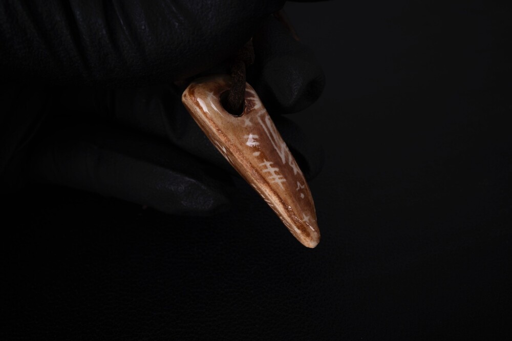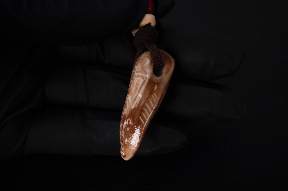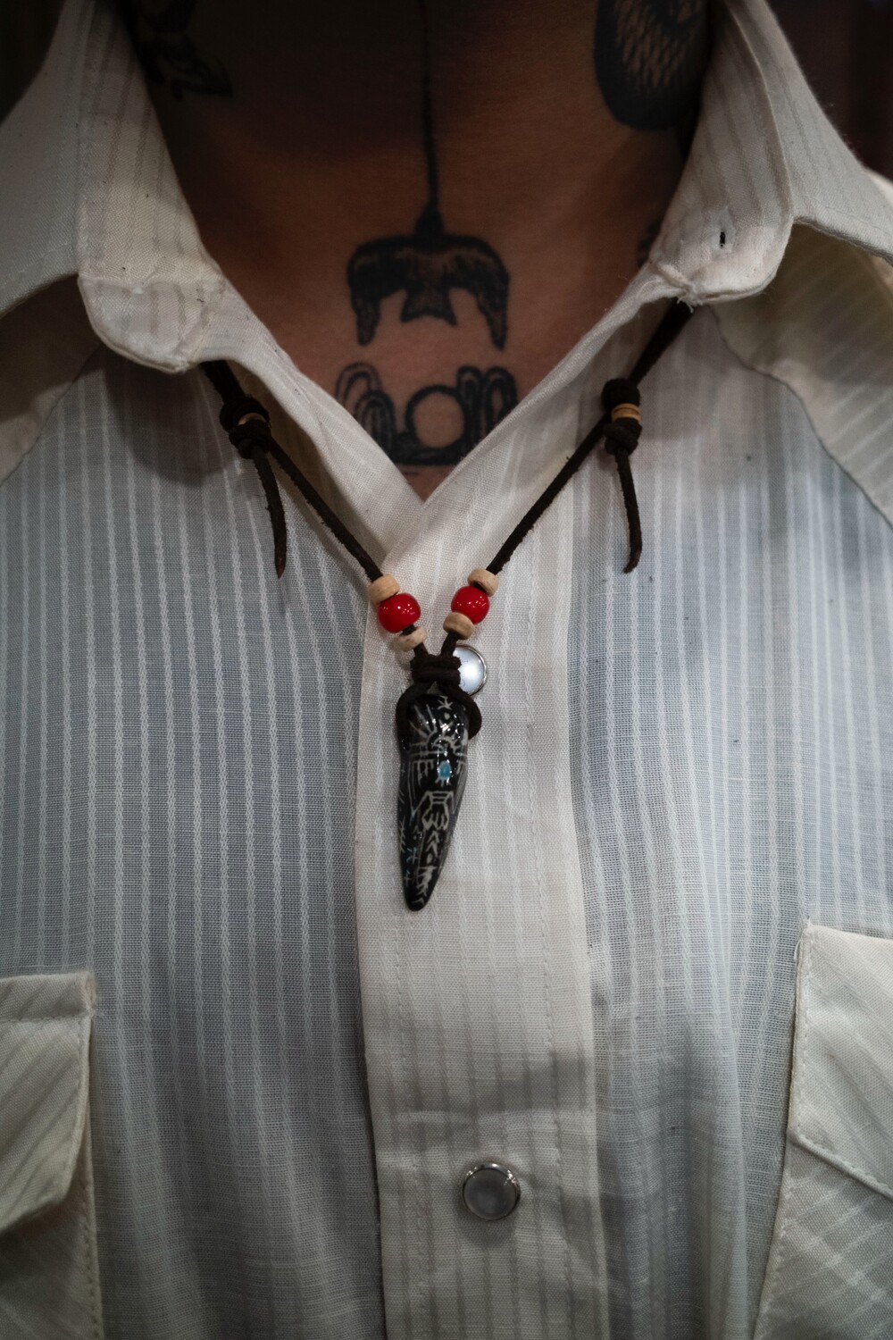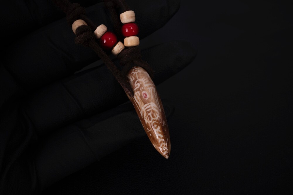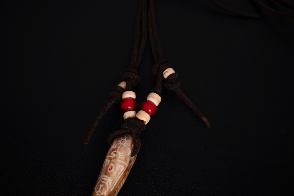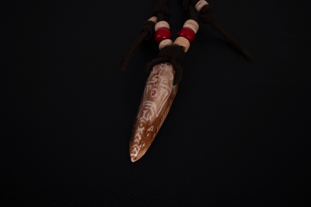 늑대 송곳니에 박지기법을 응용한 목걸이입니다.