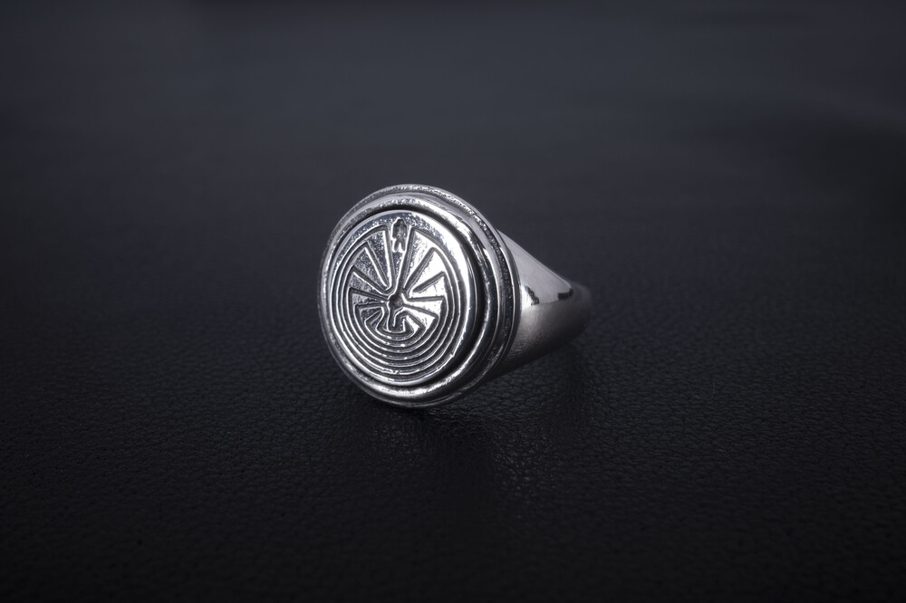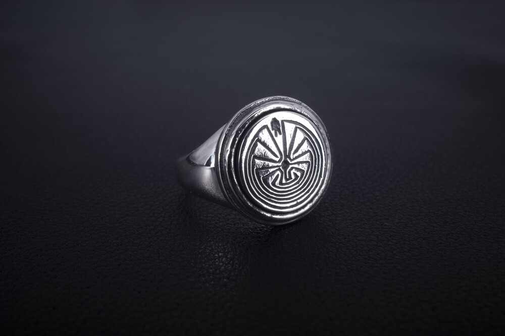 삶과 죽음, 사우의 삶의대한 인디언의 믿을을 시각적으로 표현한 심볼입니다. 7개의 원을 가진 미로 위의 사람형태는 죽음을 나타내고, 7개의 원형은 삶의 여정이자 삶의 선택한길, 회전과 변화를 의미합니다.