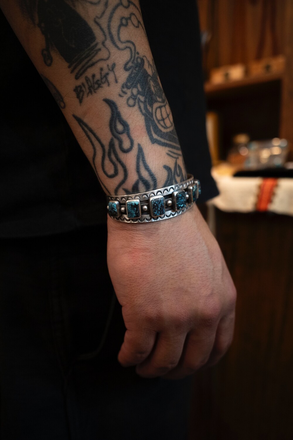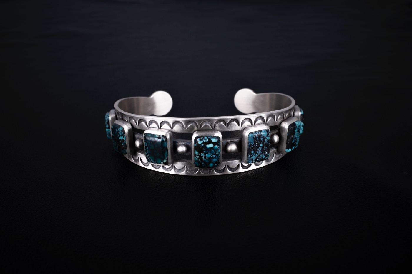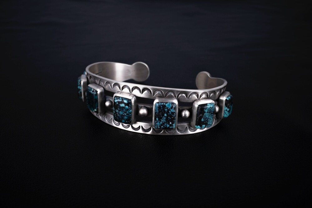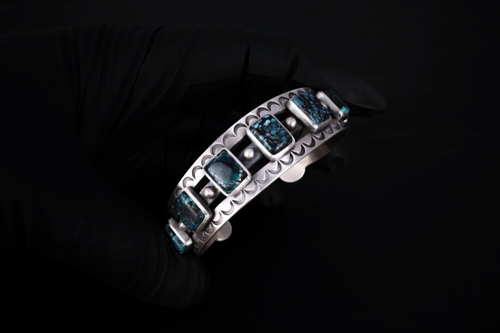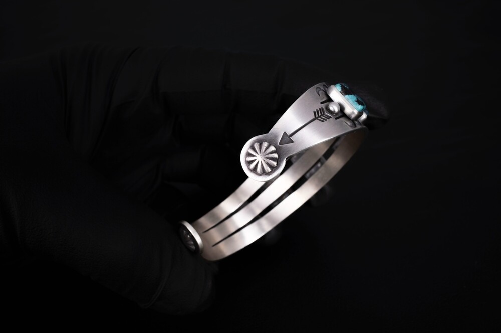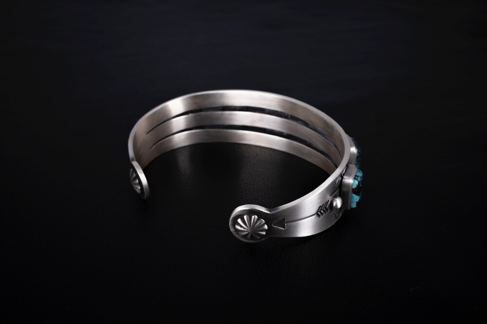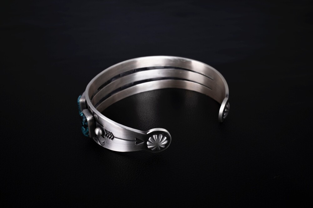 네이티브아메리칸 스타일로 제작된 터키석이 세팅된 뱅글입니다. 모든 공정 세공으로 제작된 스템핑 뱅글입니다.