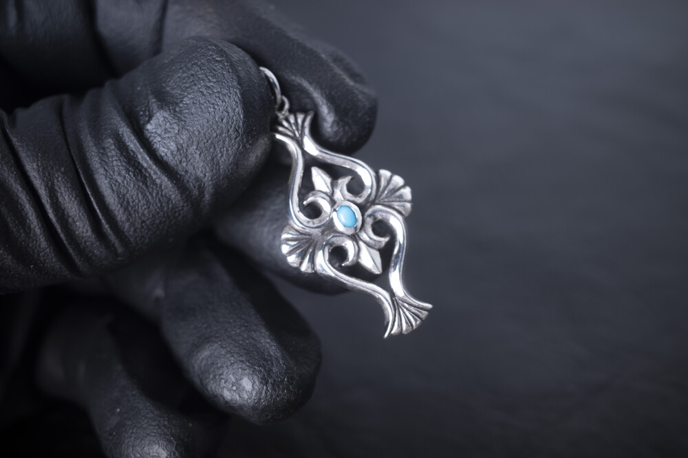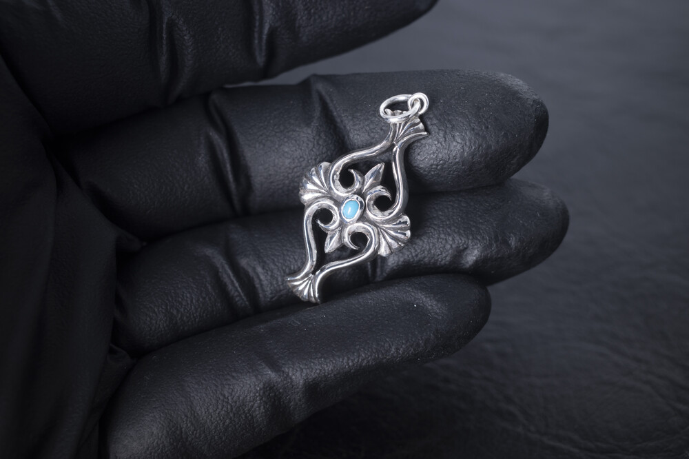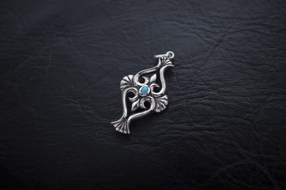 작은새싹 양면 펜던트로 양면같은 디자인의 디자인과 양면으로 터키석이 세팅되는 펜던트입니다.
