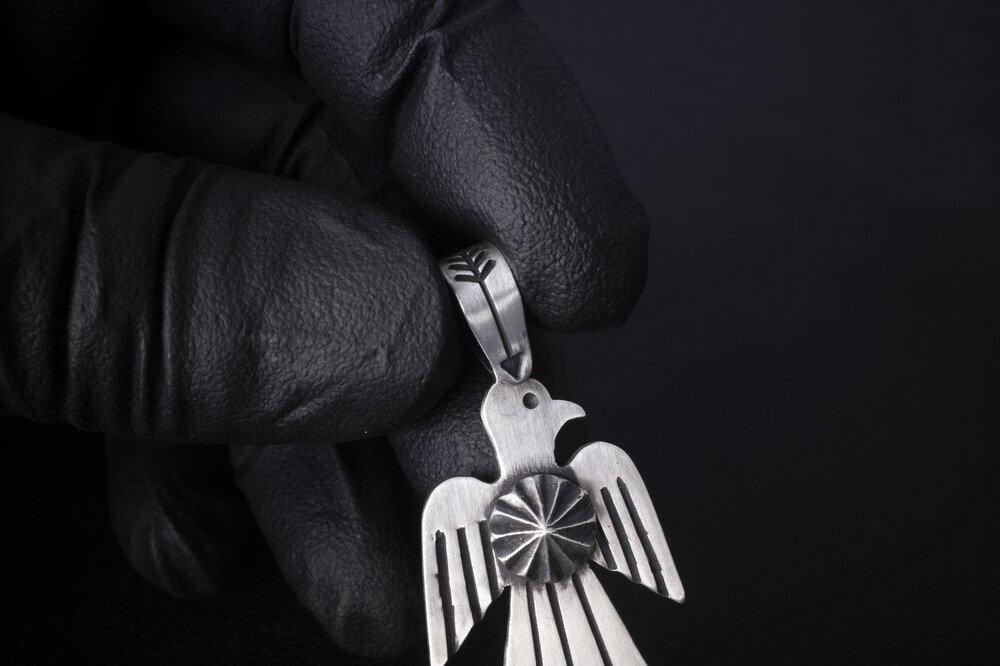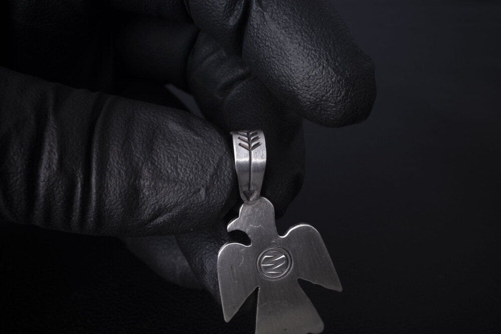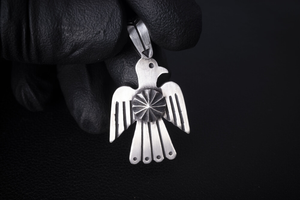 네이티브아메리칸 썬더버드디자인으로 제작된 썬더버드 펜던트입니다. 메인에는 콘쵸가 올라가 있는 제품입니다.