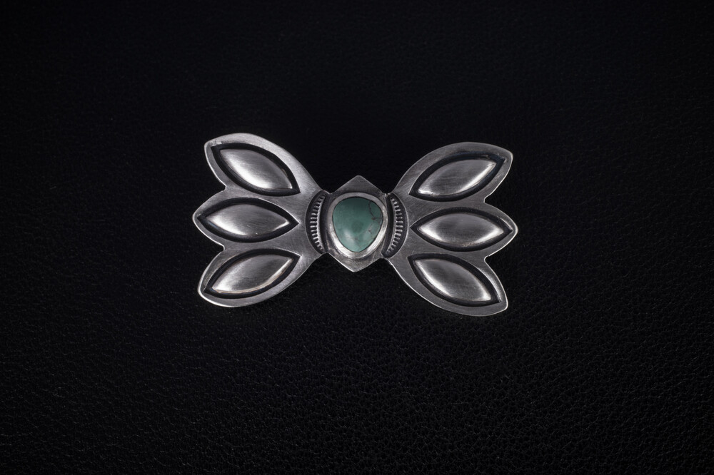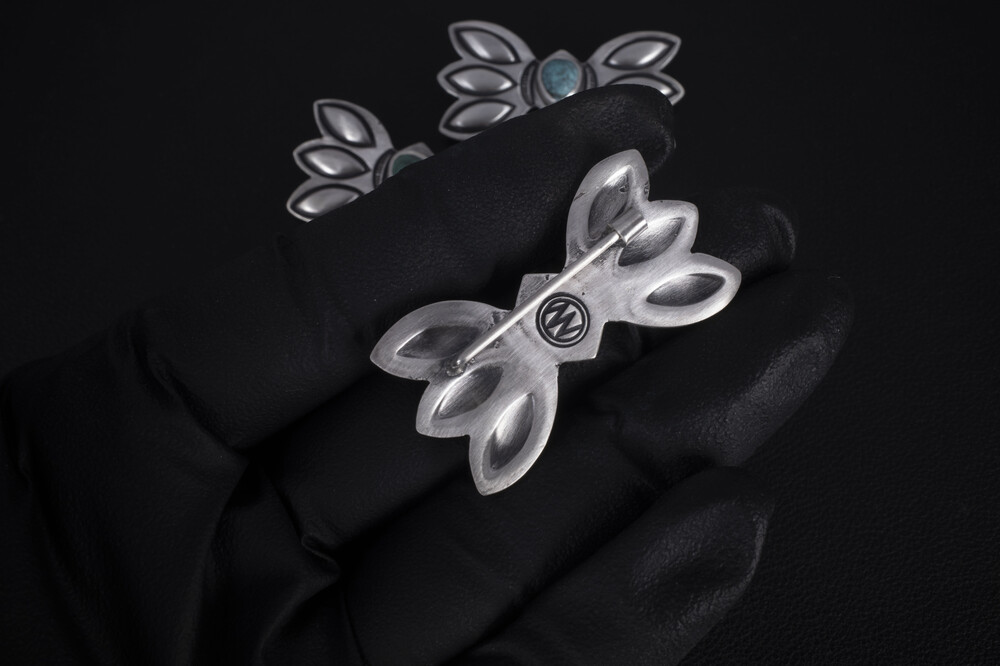 네이티브아메리칸 스타일로 제작된 나비디자인의 브로치입니다. 메인에 세팅된 원석은 터키석입니다.