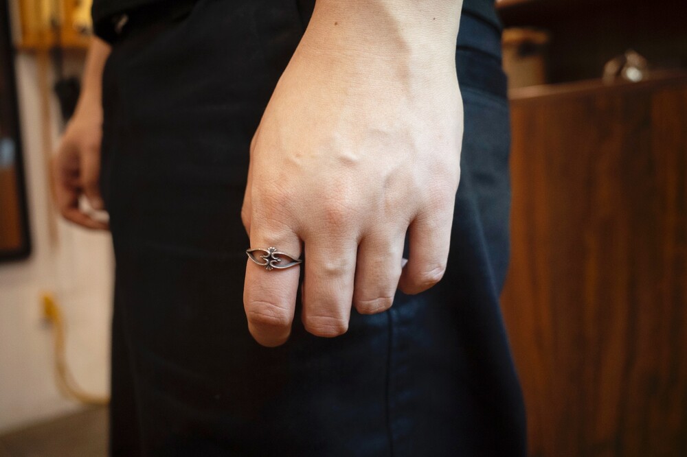 조실버 시그니처패턴으로 제작된 페이퍼 사이즈의 반지입니다.