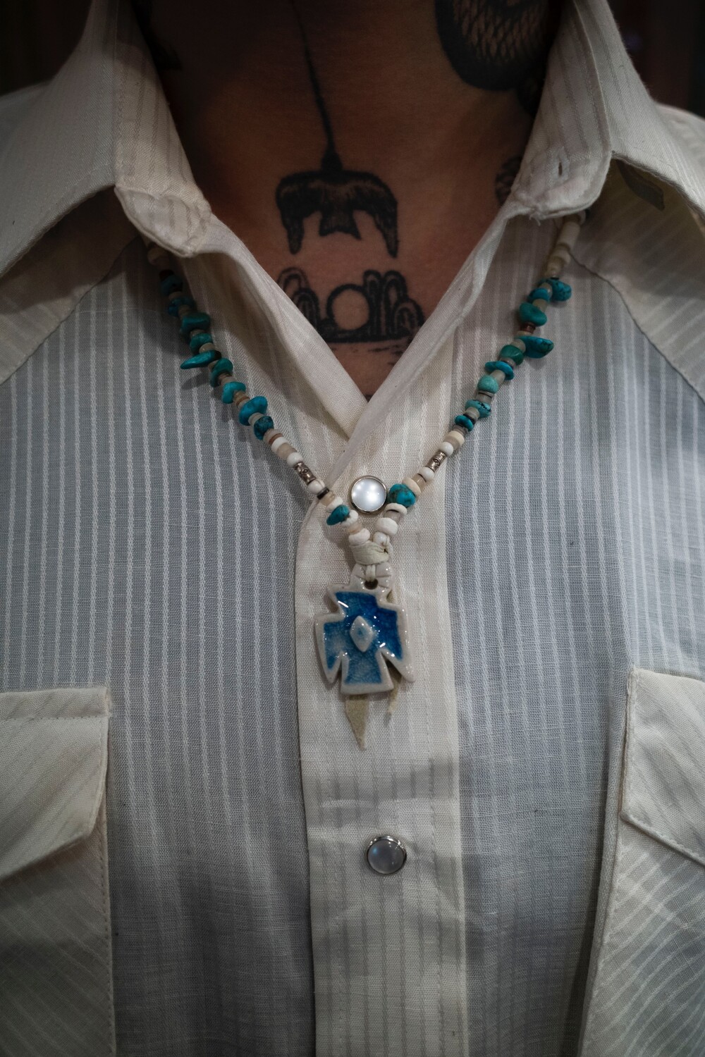 깊은 푸른색을 담은 썬더버드 목걸이입니다.