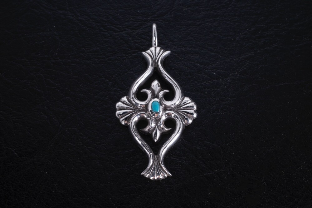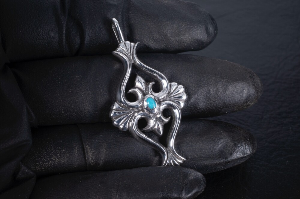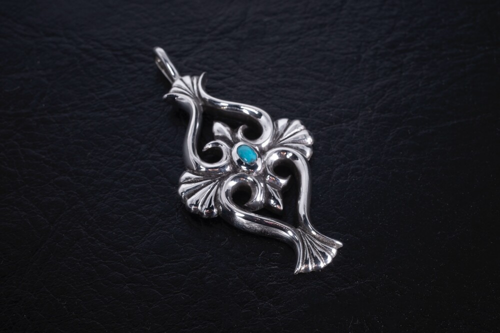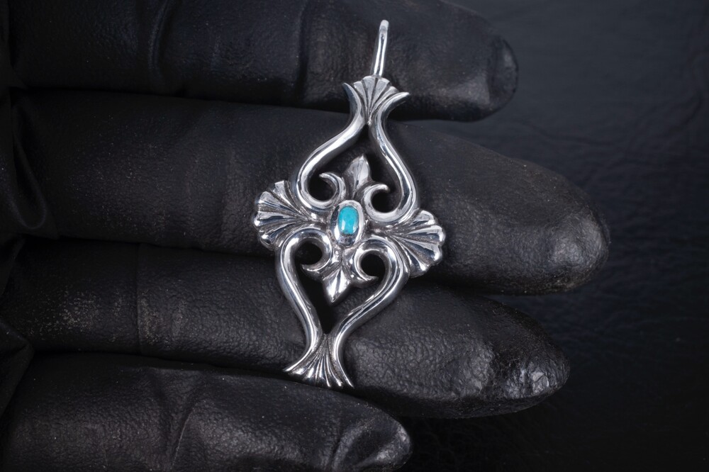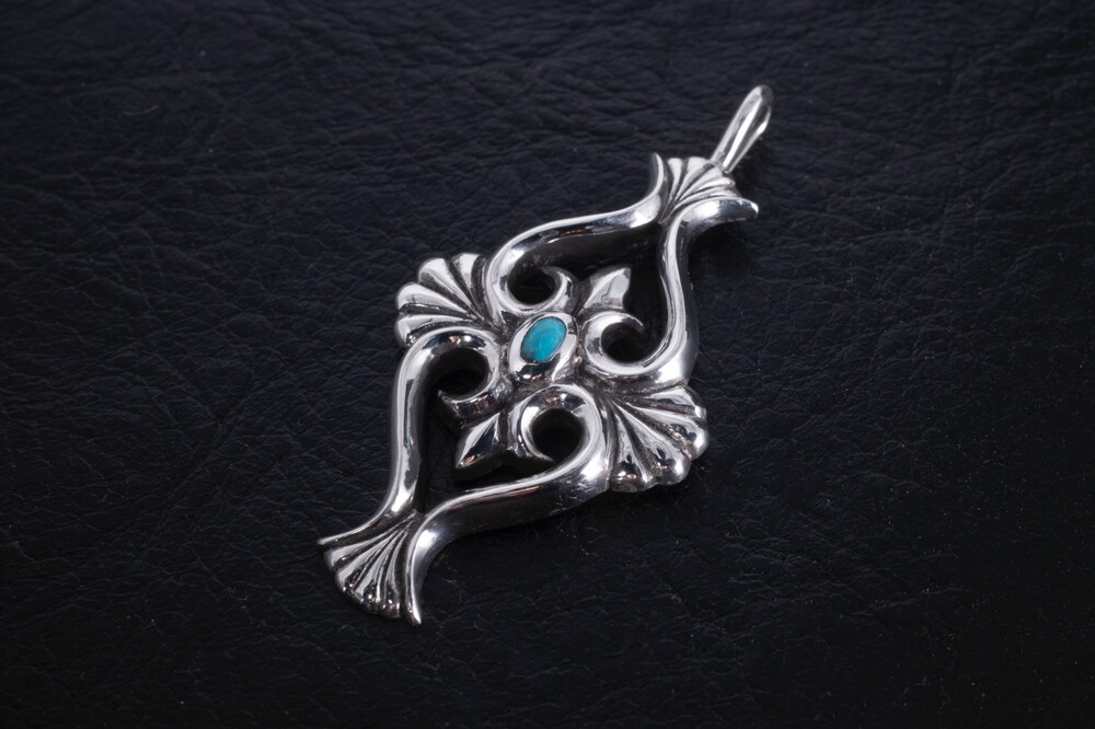 조실버 시그니처패턴으로 제작된 나바호스타일 펜던트입니다.메인의 원석은 터키석입니다.