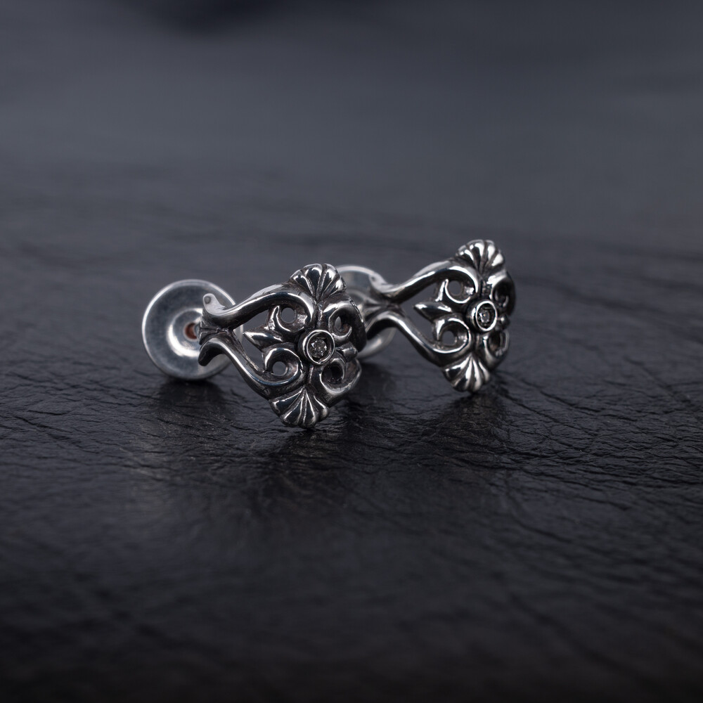 조실버 시그니처패턴의 귀걸이입니다. 실버925로 제작되었으며, 메인에는 다이아몬드가 세팅되었습니다.