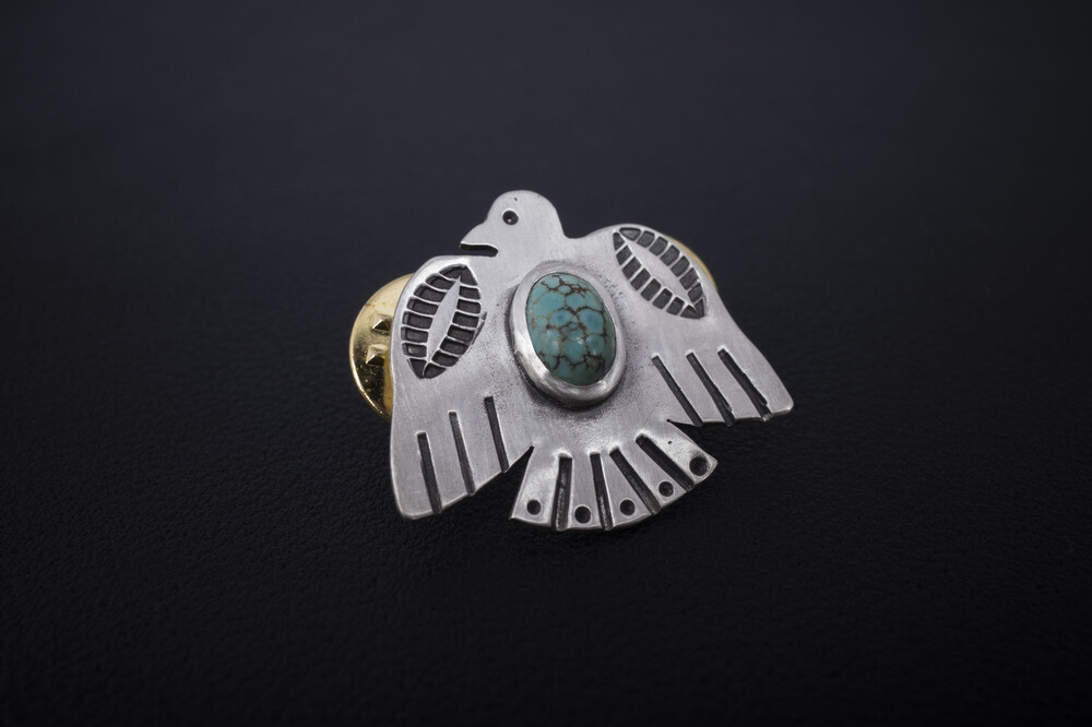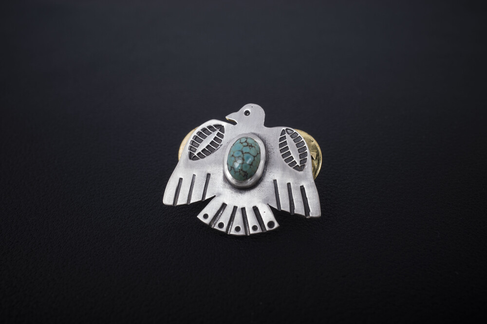 네이티브아메리칸 썬더버드디자인으로 제작된 뱃지입니다. 메인에는 천연터키석이 세팅되었습니다.