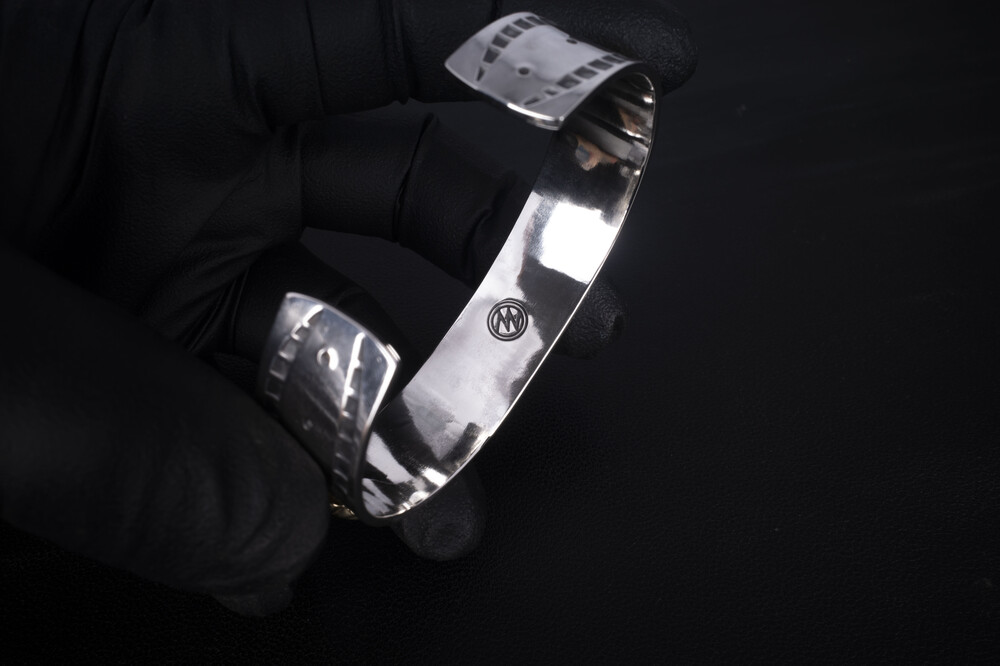 뱅글 타입의 제품입니다. 전 가공과정 핸드메이드로 제작되었습니다. 깎아내고 두드리는 과정을 통해 제품 각각의 아이덴티티가 살아있으며 시간이 지남에 따라 멋스럽게 경년변화가 이뤄집니다. 전체적으로 유광 마감된 제품입니다.