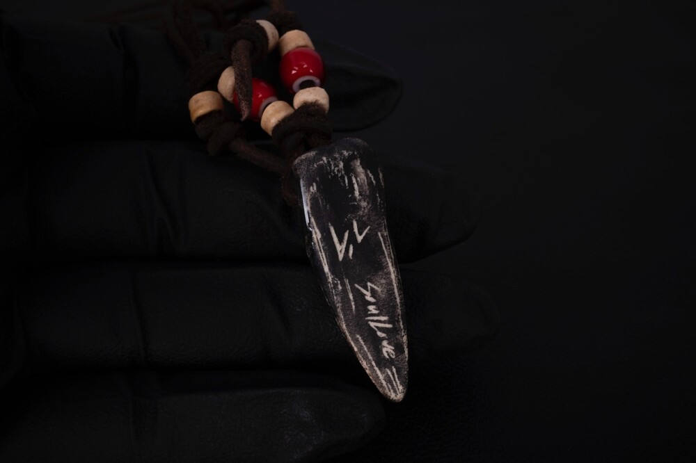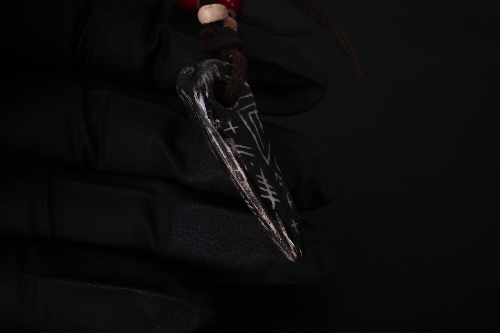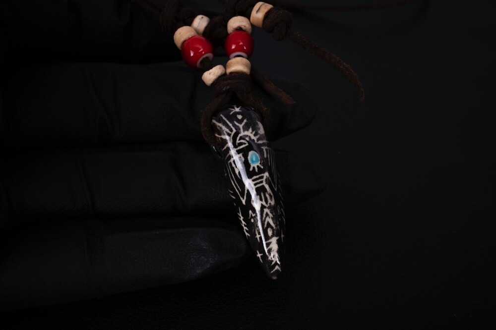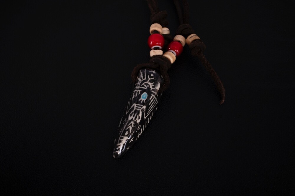 늑대 송곳니에 박지기법을 응용한 목걸이입니다.