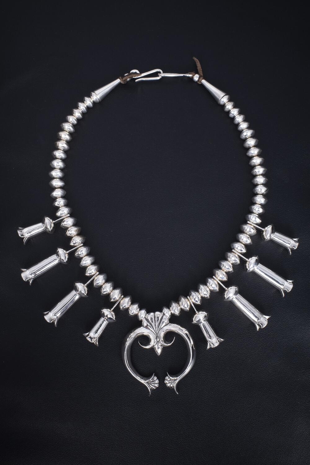 모델 겸 래퍼 박성진(Jimmy paige)님을 위해 디자인된 목걸이 입니다.조실버 Sprout naja pendant 와 Squash blossom 으로 조합된 지미 나자 목걸이입니다.목걸이는 사슴가죽줄과 은(Silver925)로 구성되었습니다.