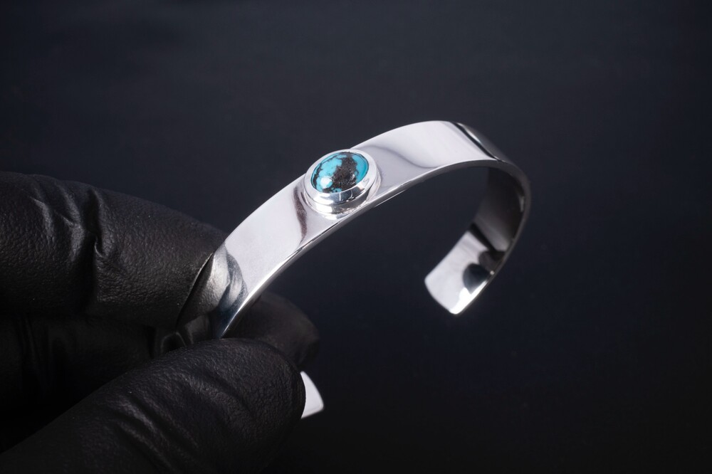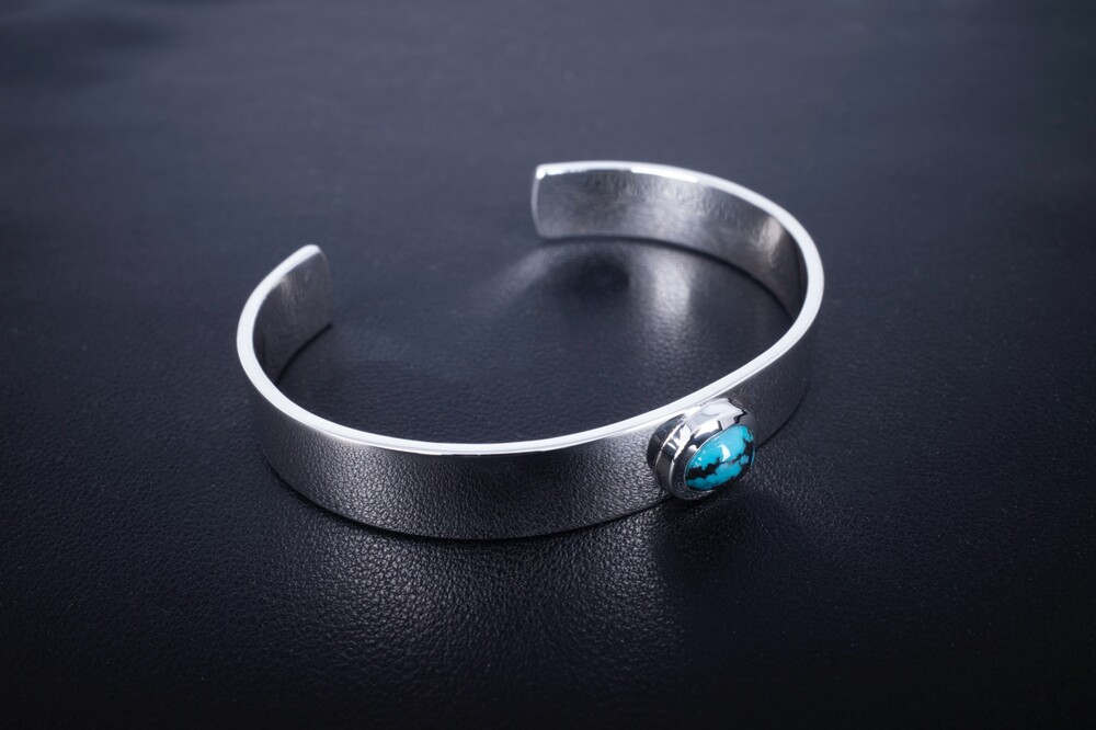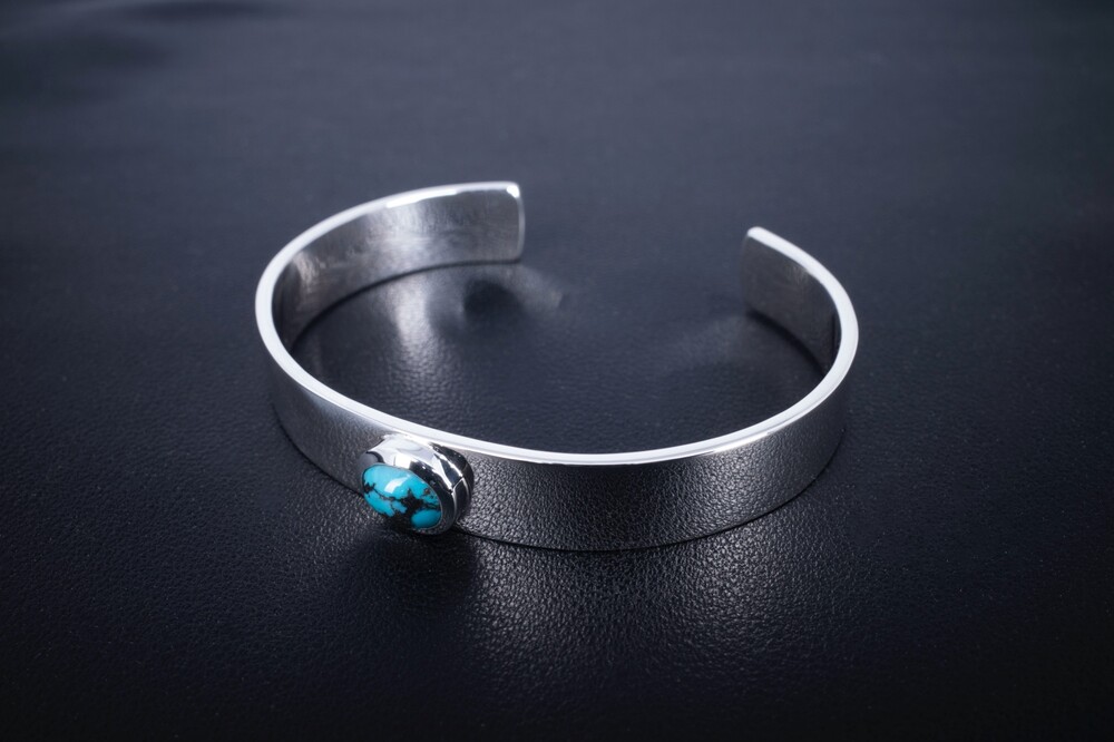 메인에는 터키석이 세팅되어 있으며, 심플한 형태의 뱅글에 메인에 터키석이 세팅되는 제품입니다.