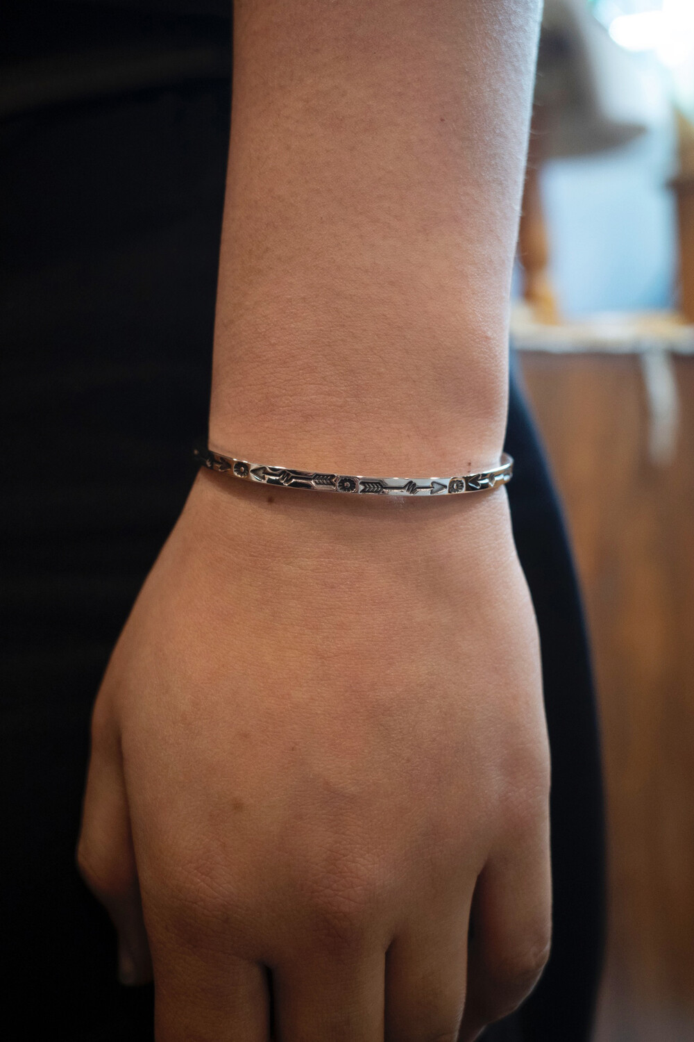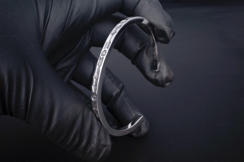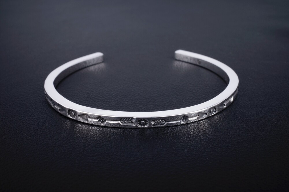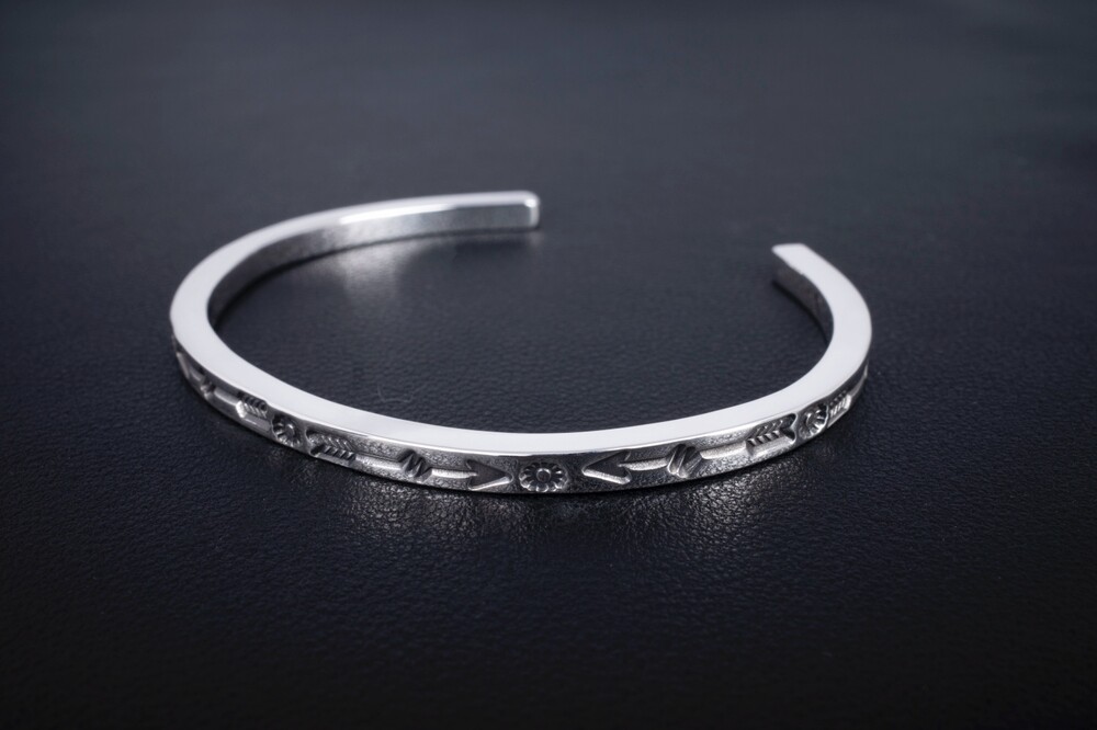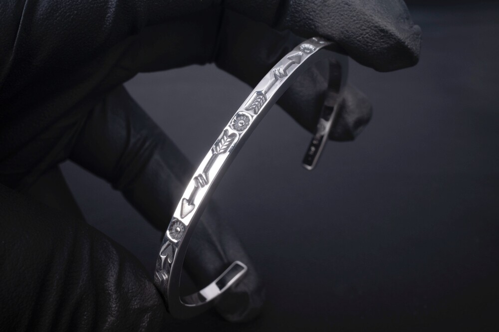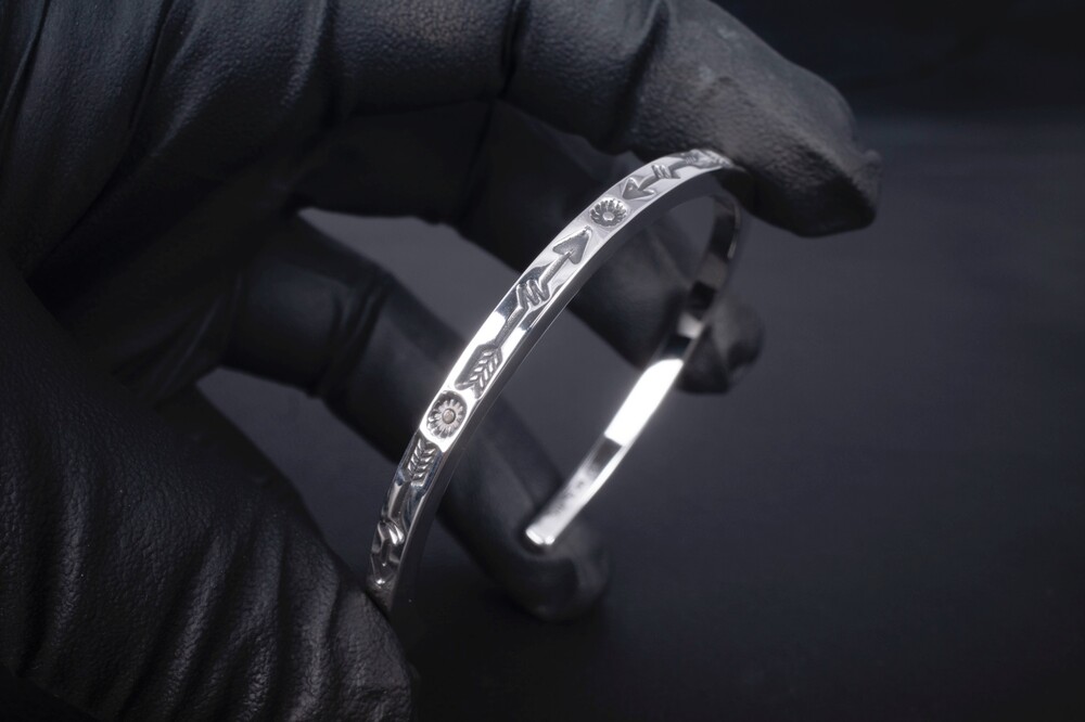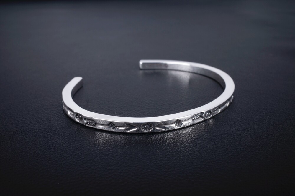 해머링기법과 스템핑기법을 사용하여 제작한 네이티브아메리칸스타일의 뱅글입니다.