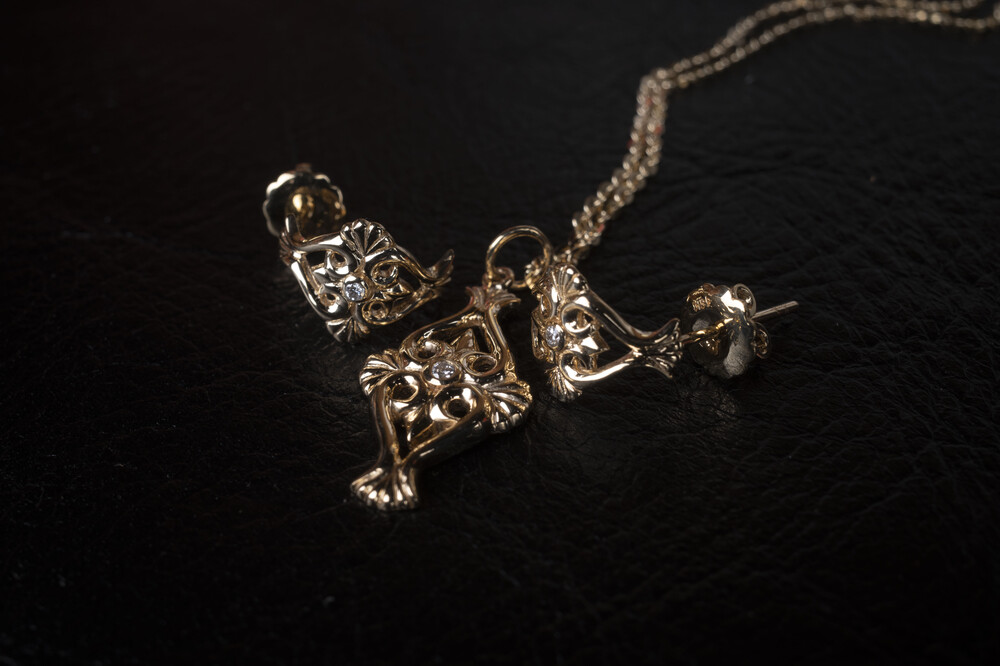 18k 옐로우 골드로 제작되었으며, 메인에는 다이아몬드가 세팅되었습니다.