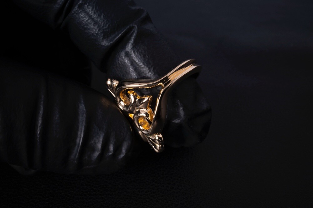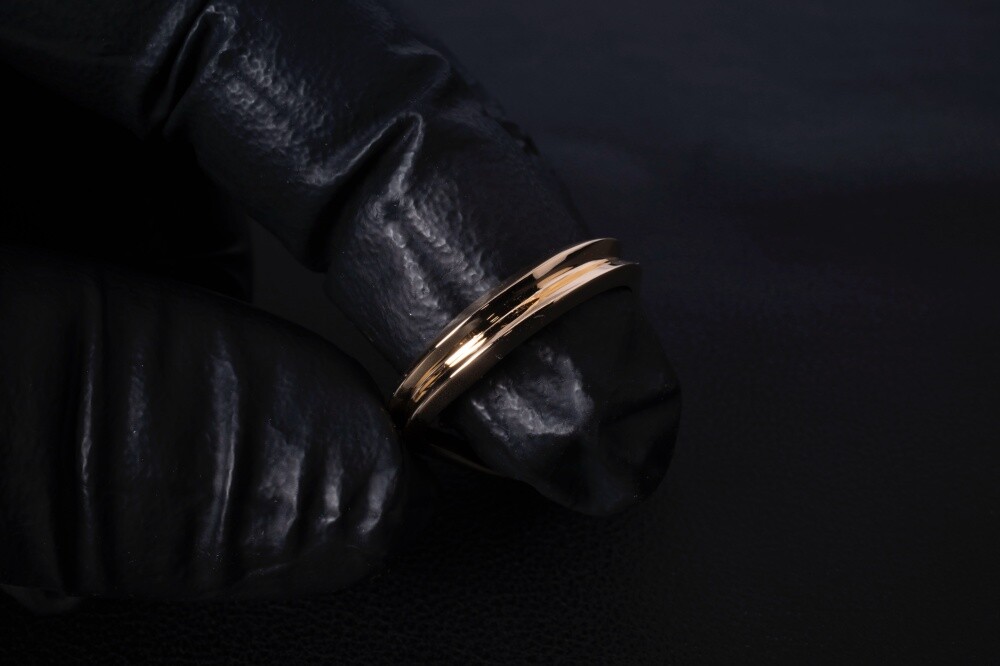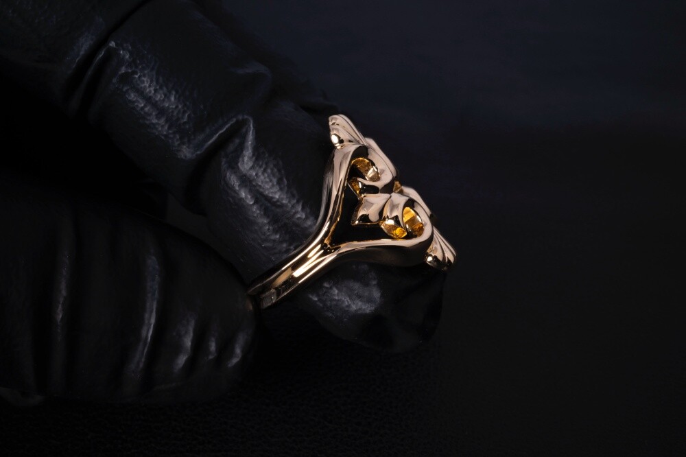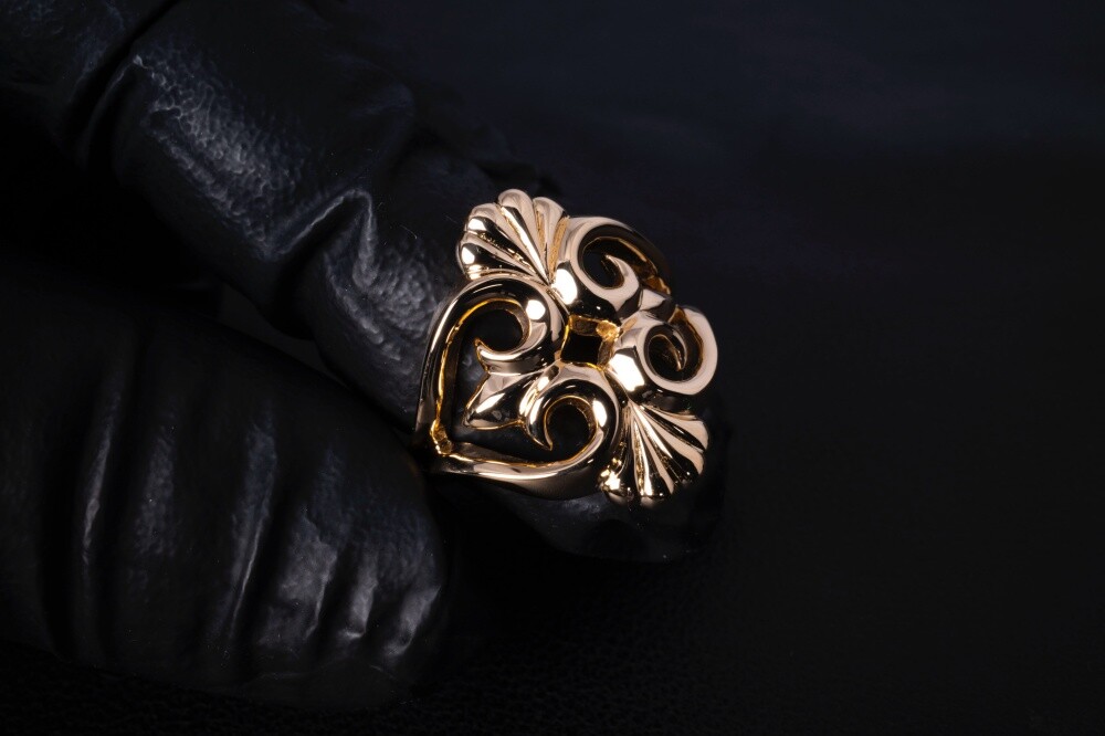조실버 시그니처패턴으로 제작된 나바호스타일 반지입니다.18k 옐로우 골드로 제작된 제품입니다.