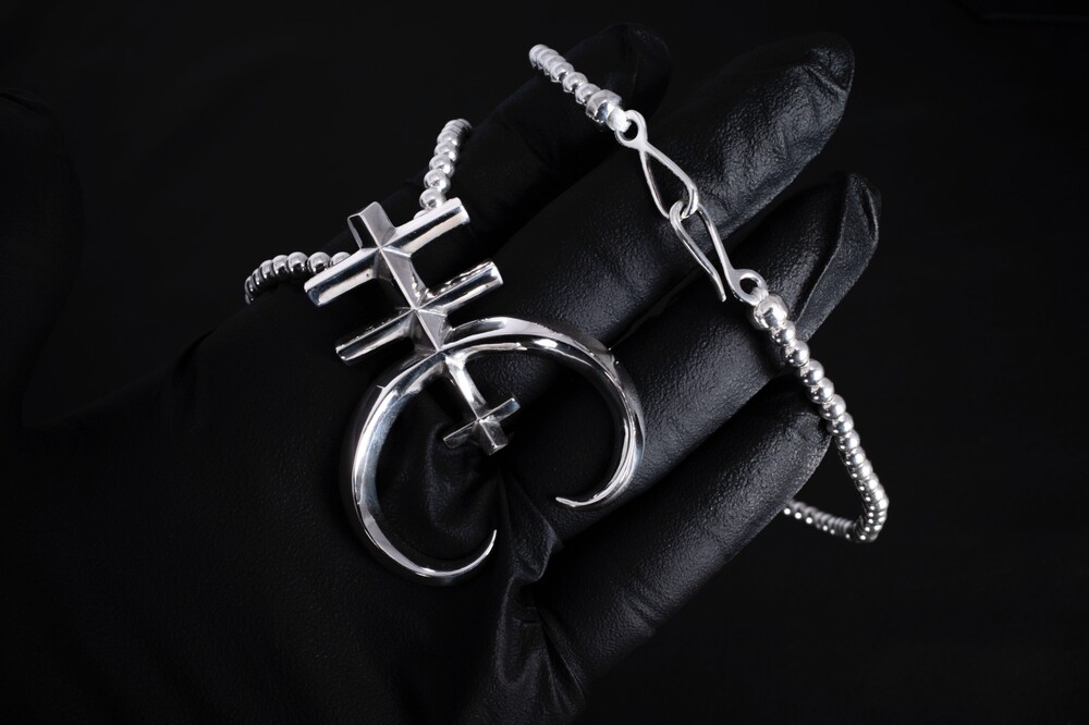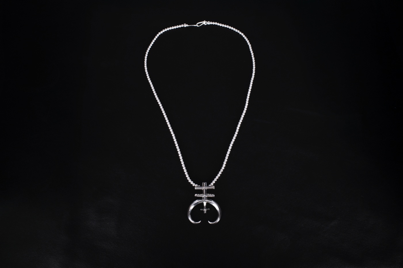 네이이티브아메리칸 주얼리의 나자 디자인으로 제작된 펜던트와 실버비즈로 구성된 목걸이입니다. 천체적으로 유광마감으로 진행된 제품입니다.