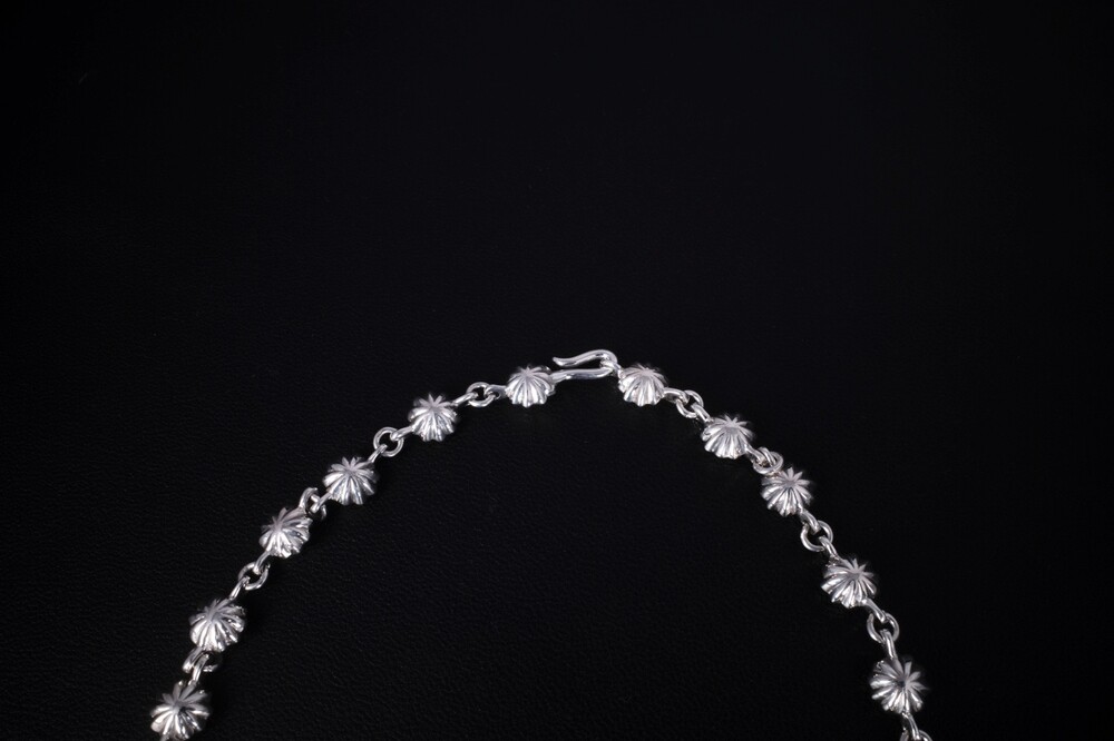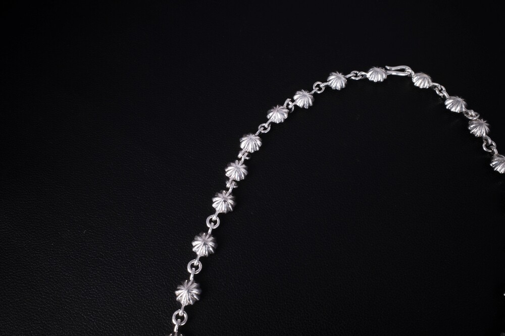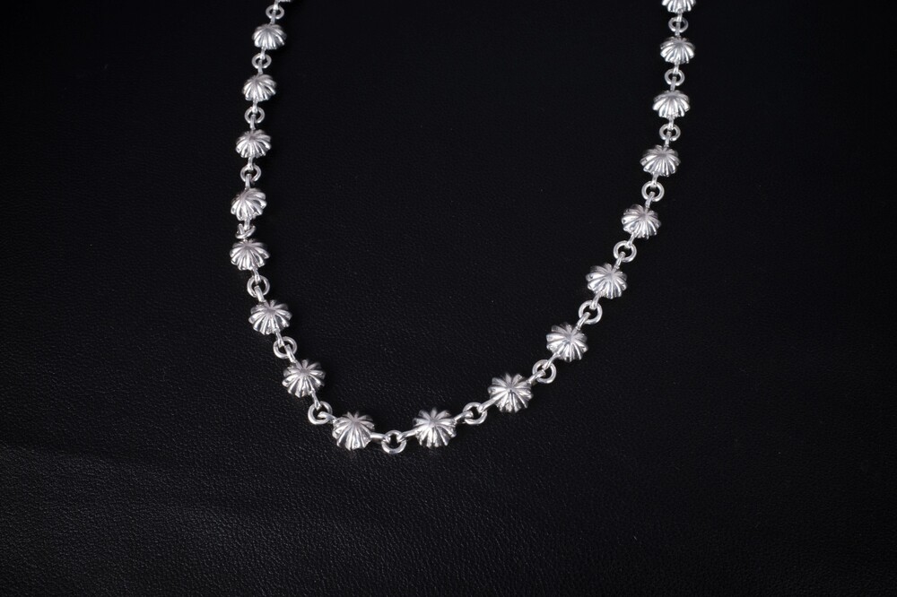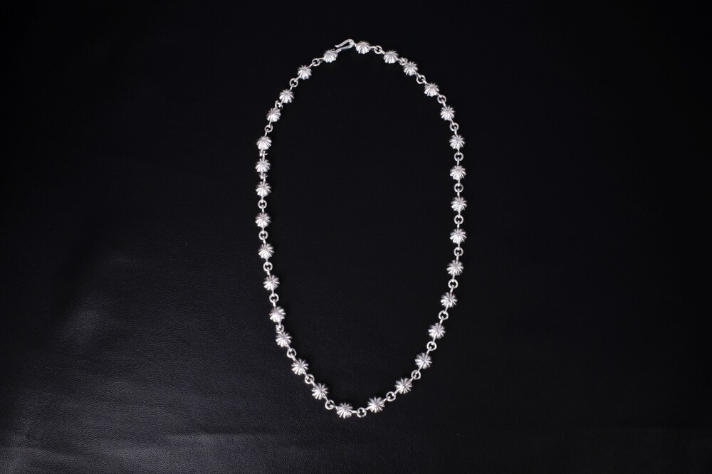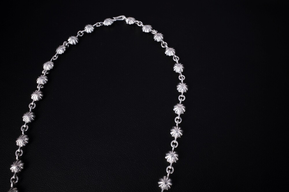 콘쵸모양으로 디자인된 파즈들을 엮어 제작한 실버콘쵸 목걸이입니다.콘쵸는 양면으로 디자인되었습니다.