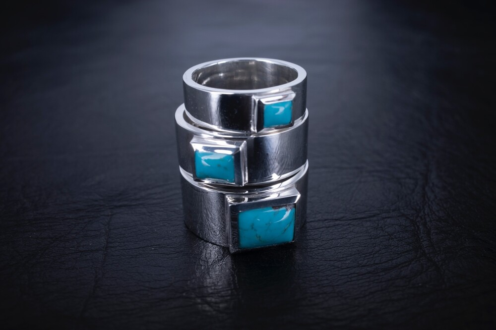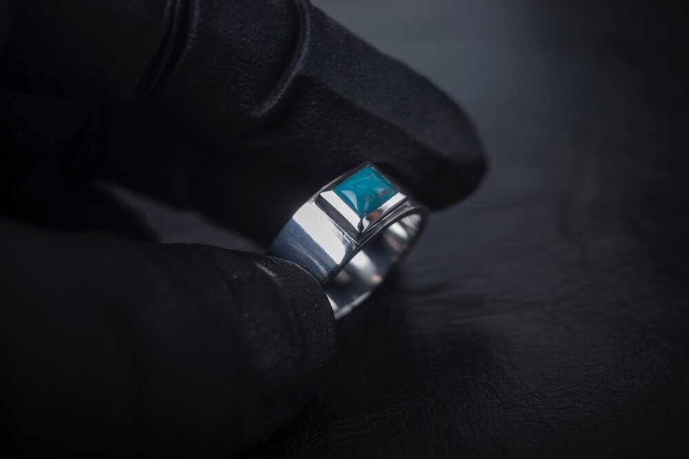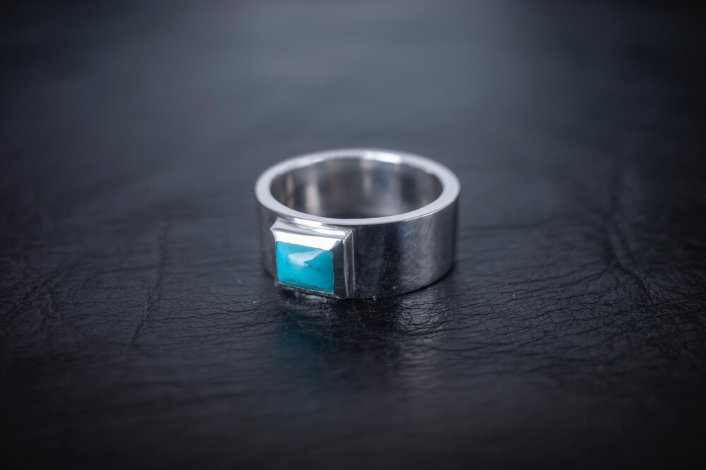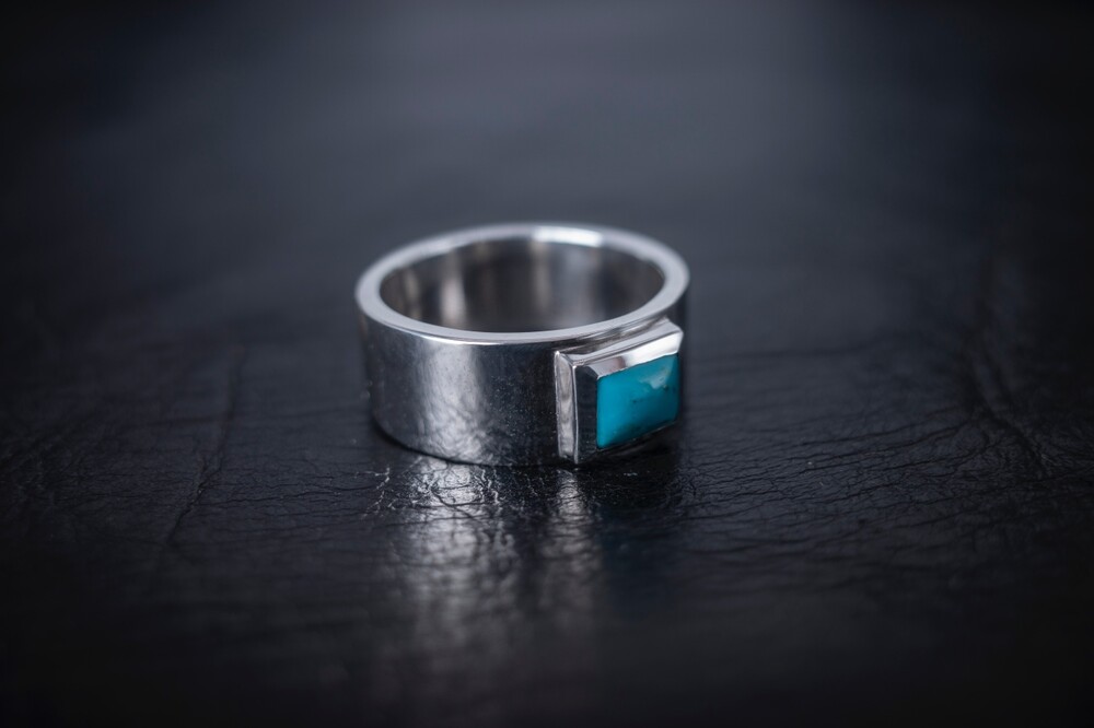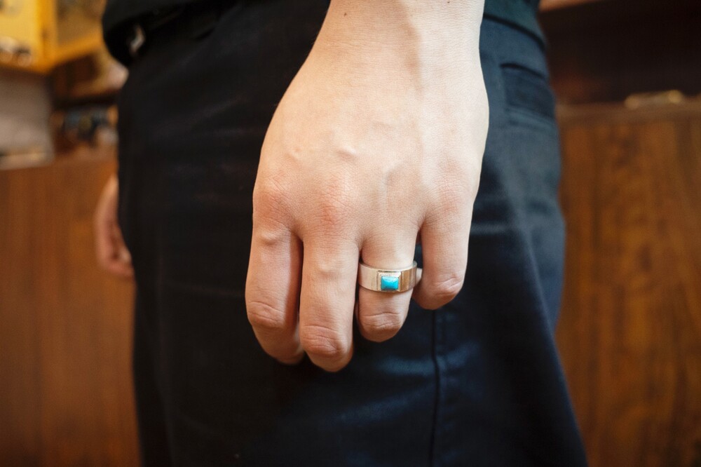 메인에는 터키석이 세팅되어있으며, 심플한 평반지형태의 반지에 메인에 터키석이 세팅되는 제품입니다.