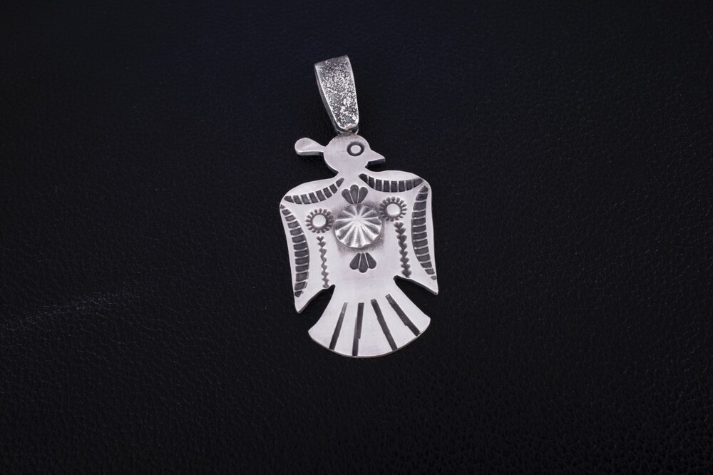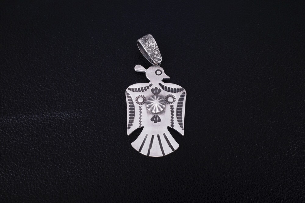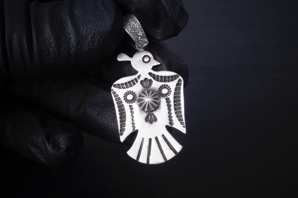 네이티브아메리칸 썬더버드디자인으로 제작된 썬더버드 펜던트입니다. 메인에는 콘쵸가 올라가 있는 제품입니다.