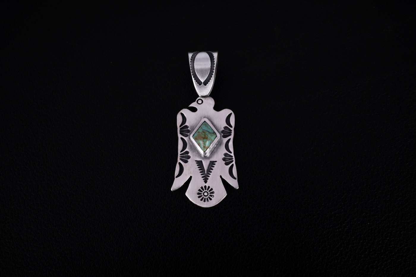 네이티브아메리칸 썬더버드디자인으로 제작된 썬더버드 펜던트입니다. 스템핑/세공기법으로 제작되었으며, 메인에는 천연터키석이 세팅된 제품입니다.