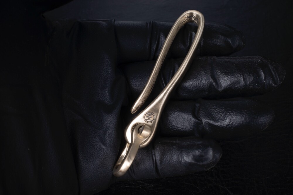 브라스 키후크입니다.벨트라인에 걸어 사용하는제품으로, 여러가지 키링과 조합해서 쓸수있는 제품입니다.
